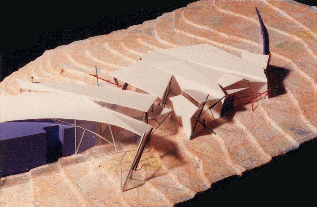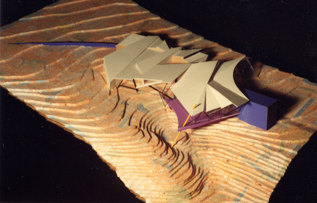 The design capitalized on unique landscape features of the site; emerging from of the rocky and rugged terrain while simultaneously slipping discretely into the landscape. The design was influenced by elusive Sonoran Desert lizards, notably the Gila Monster. The complex angularity of the walls is derived by extrusion perpendicularly from specific tangencies found naturally on the site. Antithetically from a strategy of ease where the site is flatest and easiest to build on, instead the building seeks to fully engage the most engaging relationships to specificity of site and place. advisor: Gerald R McSheffrey