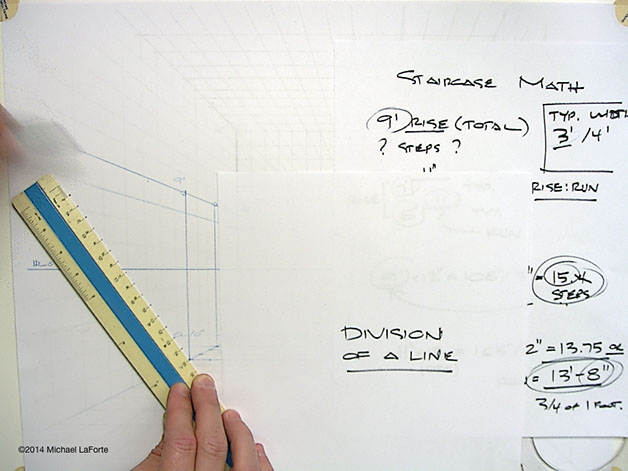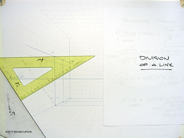 Use the division system to divide up your vertical "plumb" line into evenly distributed segments based on the number of steps derived in your staircase math.