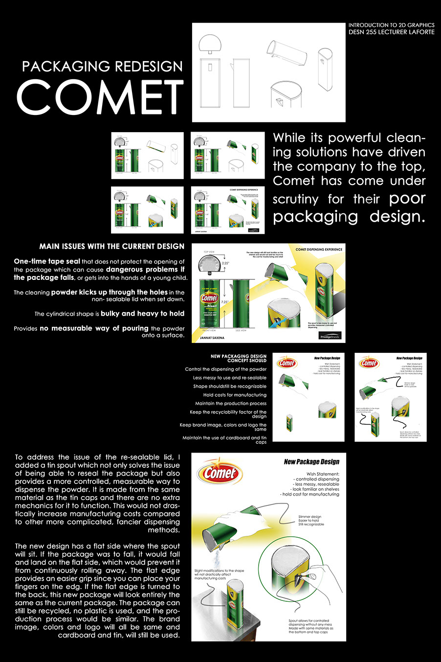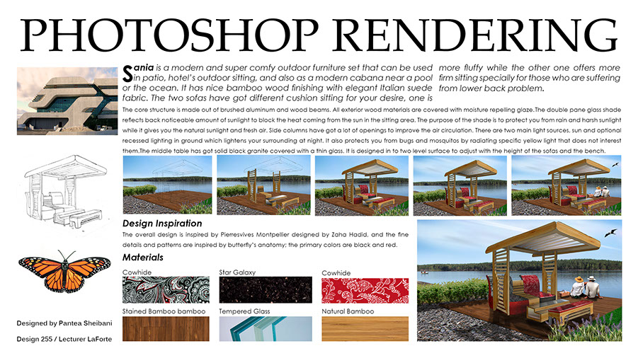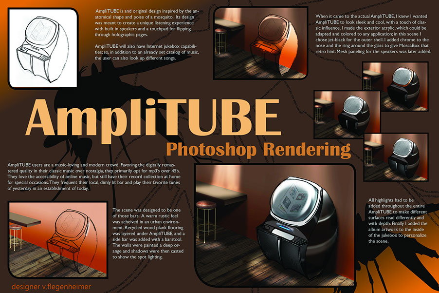 Three presentation panels for a VW competition by student Adrian Villanueva.