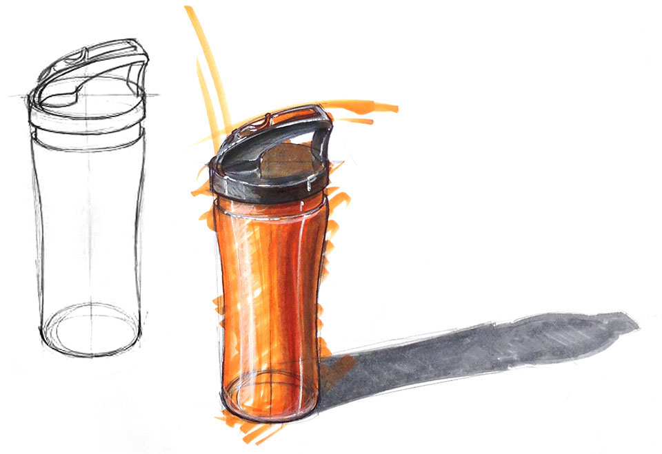 Vertical Cylinder marker rendering demo of a polished metal with rubber grip and lid.