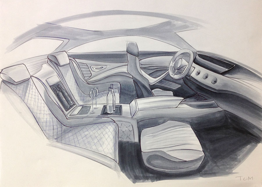 • Car/Vehicle Interiors are often designed by interior designers, not only "industrial or product" designers, interior designers are often better bringing tactility and humanity to the surfaces we interact with, upholstery, stitching, contrast of textures and color palette.