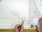 From the handrail height just marked, carry a line parallel to the stairs up to the second level.
