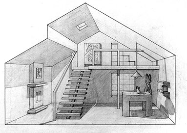 Shading in the horizontal plane of the ceiling, below the loft area will help you see the space.