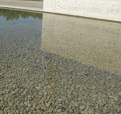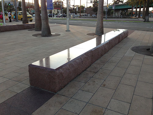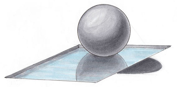 Polished Floors, Polished Counter Tops, or simply polished top horizontal planes on common products like a toaster, desk, or coffee table. Notice how the polished horizontal plane (seat) of this granite bench (left) captures the reflections of the environment. Likewise with the wall in the reflecting pool on the right. The reflections go straight down.