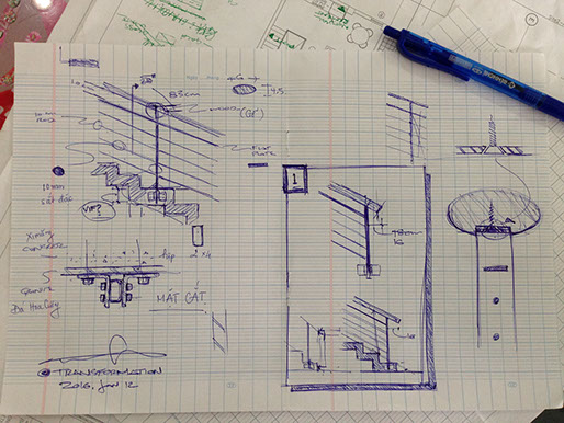 Our first project in SE Asia, this new home is set near the vibrant urban core of a peripheral city 40km East of Ho Chi Minh City in Southern Vietnam. When completed, the 4200 sf home will also include three on-site retail income properties for this entrepreneurial couple nearing retirement, and an empty nest. Given the near-Equatorial climate, the home has been oriented on the site to block the patio and garden from the intense sun, while still allowing maximum outdoor engagement. Additionally, city noise was given extensive consideration and strategies were employed to dissipate noise as much as possible. The home will have large open French doors to the patio and garden on the ground floor, and views across the city from the second floor bedrooms and baths. It is currently nearing completion.